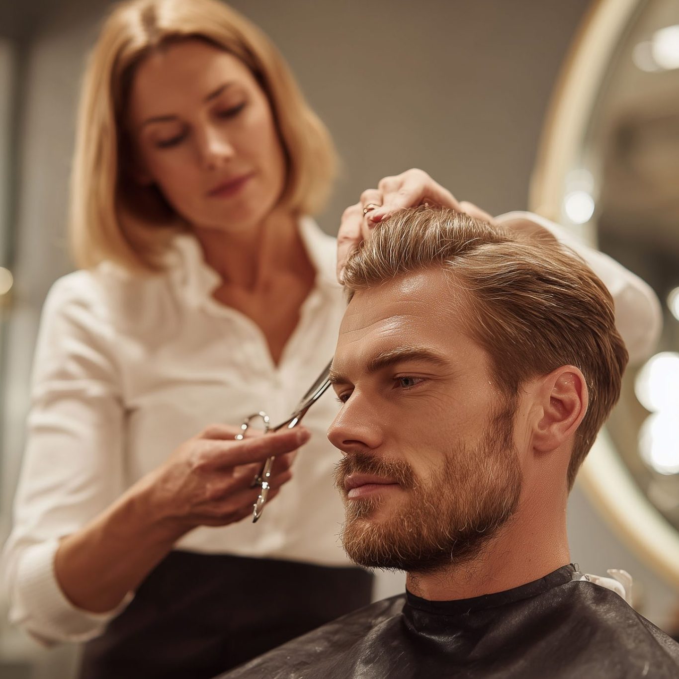 Der Herrenhaarschnitt umfasst moderne und klassische Stylings, individuell abgestimmt auf Gesichtsform und Haarstruktur. Ob kurz, mittellang oder Undercut – wir sorgen für einen frischen und gepflegten Look. Mit Rasur- oder Konturkorrekturen am Nacken und sauberen Übergängen verleihen wir Ihrem Stil den letzten Schliff. Selbstverständlich gehört eine ausführliche Beratung zur Auswahl des passenden Schnitts mit dazu.